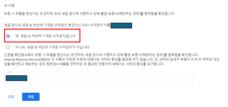 구글 애드센스 미국세금정보 제출시 문서누락해결방법