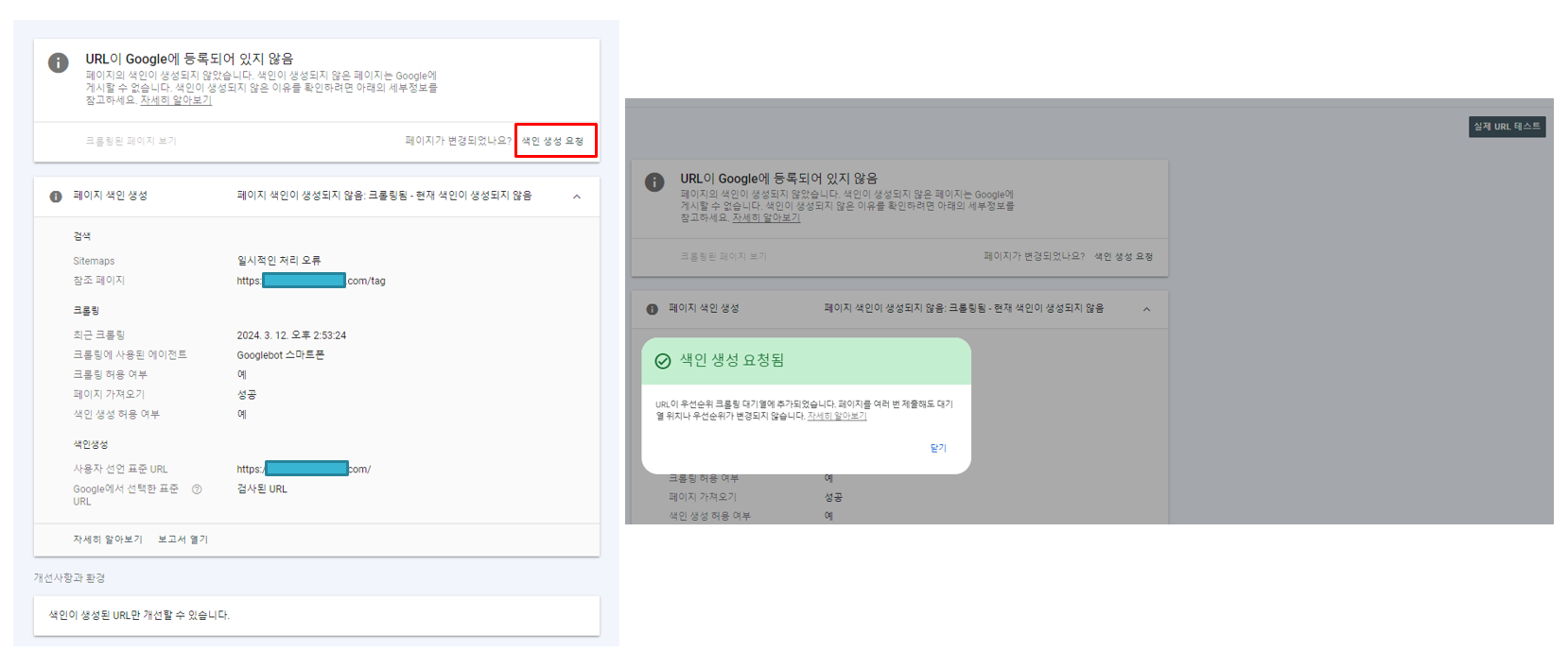 - 저는 양이 많지 않아서 주소 하나하나 다 검사 후 색인요청을 했습니다.