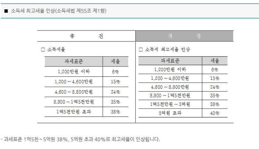 - 개정 : 소득세 1,400만원 이하까지 세율 6%