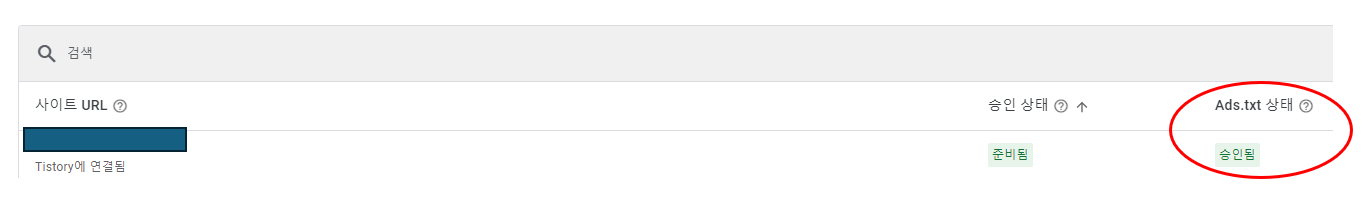 √ 사이트 탭 ▶ 'ads.txt 상태'가 찾을수 없음으로 된 '사이트 URL'을 선택
