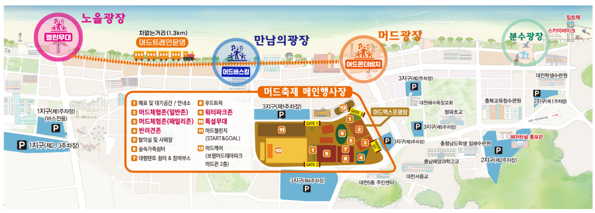 축제장소 : 대천해수욕장 일원(체험존/주공연장-보령머드엑스포광장)