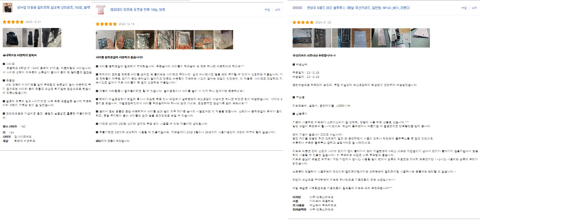 아이들 제품의 경우는 아이들 신체 사이즈를 공유했고,