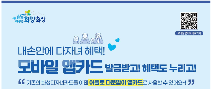 화성시 다자녀카드가 모바일카드로 발급되었습니다.