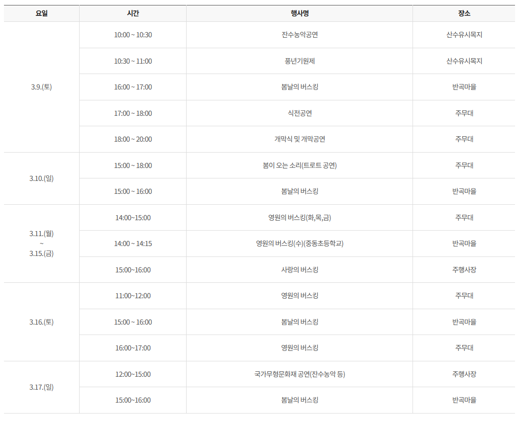 * 기간 : 3월 9일 토요일~3월 17일 일요일