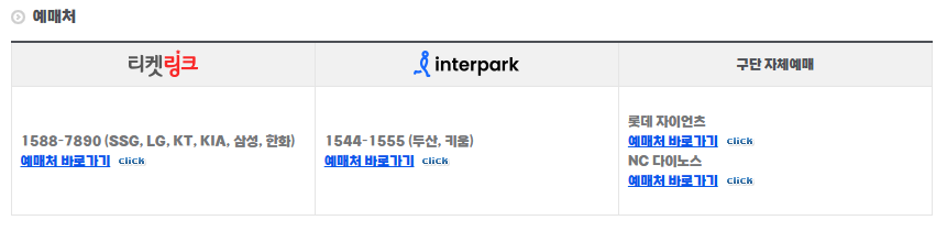 √ 구단별로 예매처 상이하니 예매처 혼동 없이 구매하시기 바랍니다.